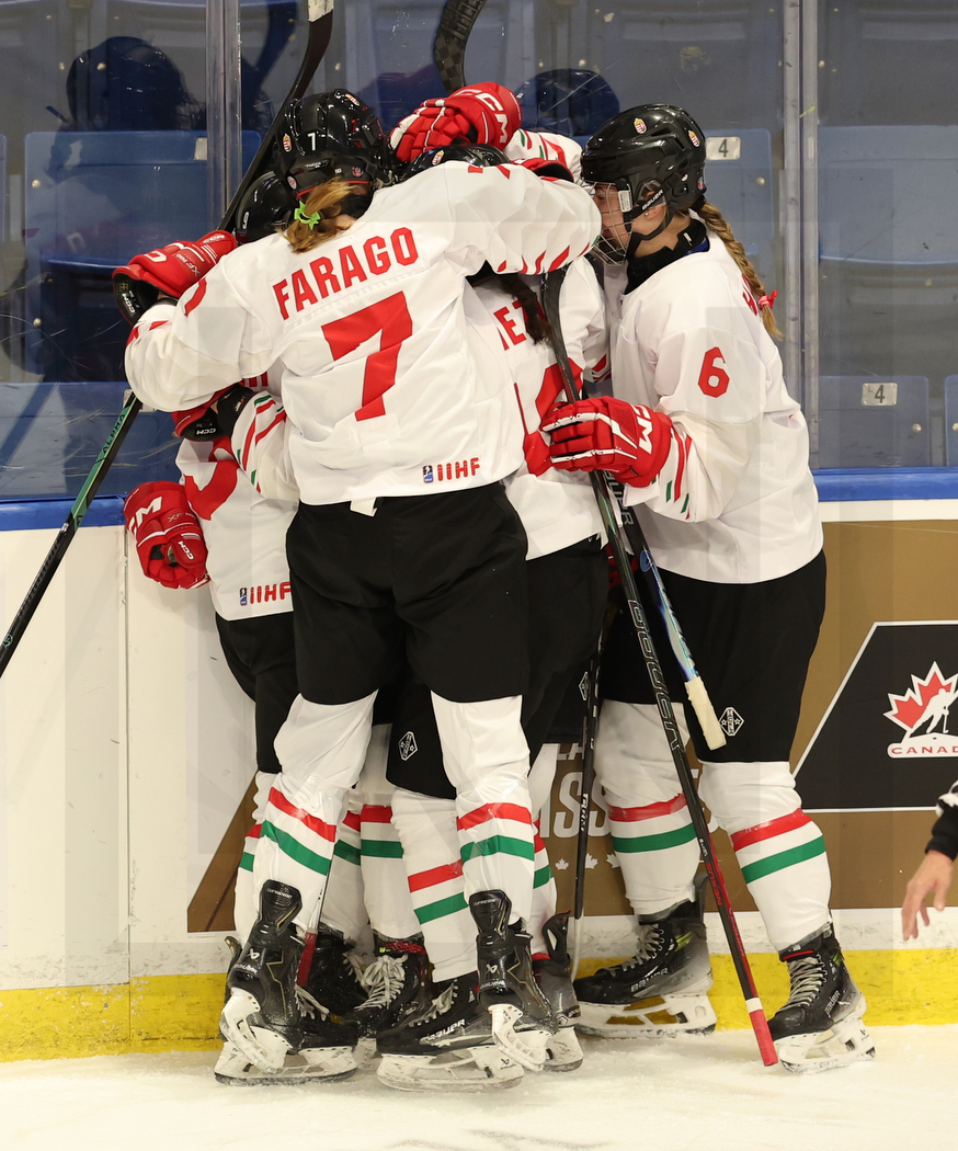 WK20260117_0025 17. Januar 2026 874 × 1050 PHOTO GALLERY U18 WOMAN’S WORLDS RELEGATION GAME HUN – FIN 7:5 SYDNEY, CANADA, 17, Jan, 2026, U18 Woman’s Worlds, Relegation Round, HUN vs. FIN. Image shows goal celebration Hungary. Photo: Werner Krainbucher