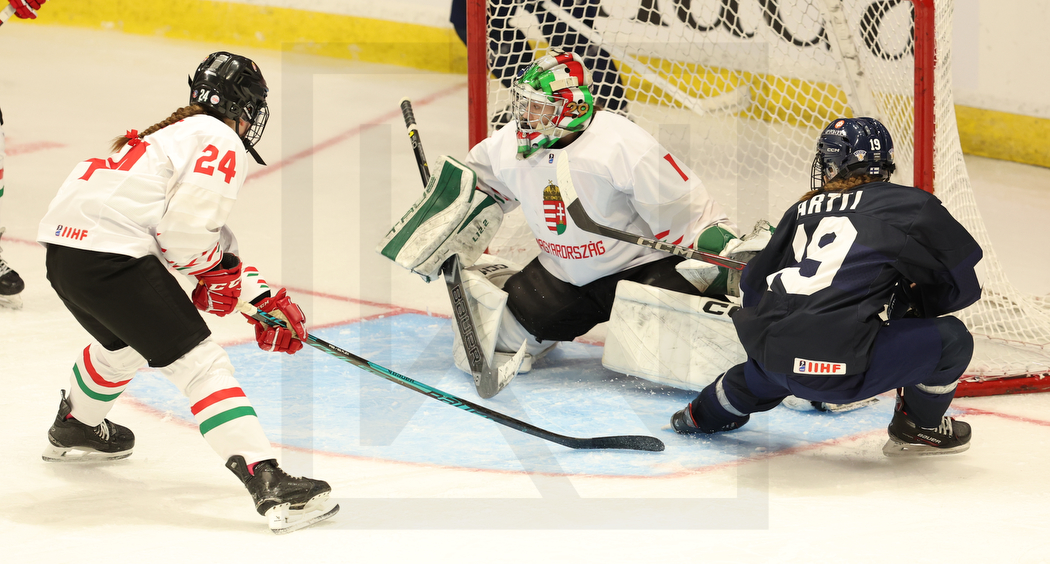 SYDNEY, CANADA, 17, Jan, 2026, U18 Woman’s Worlds, Relegation Round, HUN vs. FIN. Image shows Helga TAMAS #24 (Hungary), Zoe TAKACS #1 (Hungary) & Tuulianna ARTTI #19 (Finland). Photo: Werner Krainbucher