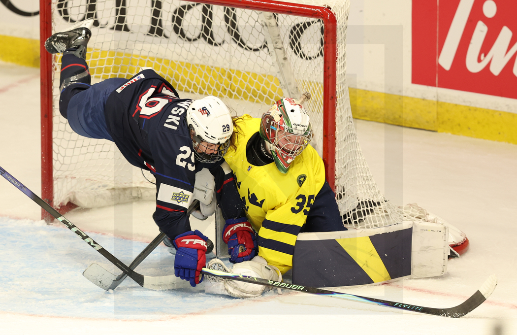 SYDNEY, CANADA, 17, Jan, 2026, U18 Woman’s Worlds, Semifinals, USA vs. SWE. Image shows Lindsay STEPNOWSKI #29 (USA) & Meja ENGELIN #35 (Sweden). Photo: Werner Krainbucher