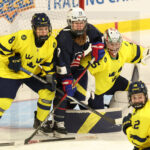 SYDNEY, CANADA, 17, Jan, 2026, U18 Woman’s Worlds, Semifinals, USA vs. SWE. Image shows Svea NORDQVIST #8 (Sweden), Madelyn KIMBREL #17 (USA), Meja ENGELIN #35 (Sweden) & Tilde GRILLFORS #12 (Sweden). Photo: Werner Krainbucher