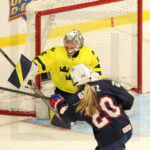 SYDNEY, CANADA, 17, Jan, 2026, U18 Woman’s Worlds, Semifinals, USA vs. SWE. Image shows Meja ENGELIN #35 (Sweden) & Alaina GNETZ #20 (USA). Photo: Werner Krainbucher