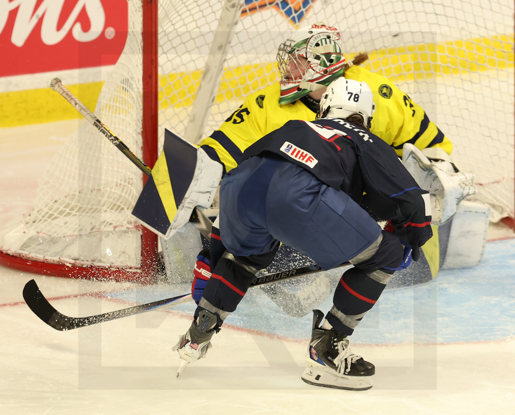 SYDNEY, CANADA, 17, Jan, 2026, U18 Woman’s Worlds, Semifinals, USA vs. SWE. Image shows Meja ENGELIN #35 (Sweden) & Jillian MCLAUGHLIN #78 (USA). Photo: Werner Krainbucher