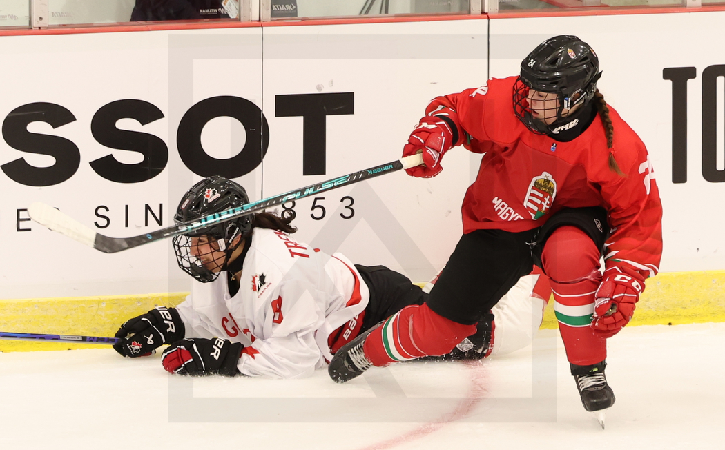 MEMBERTOU, CANADA, 12, Jan, 2026, U18 Woman’s Worlds, CAN vs. HUN. Image shows Rosalie TREMBLAY #8 (Canada) & Helga TAMAS #24 (Hungary). Photo: Werner Krainbucher