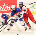 MEMBERTOU, CANADA, 13, Jan, 2026, U18 Woman’s Worlds, USA vs. FIN. Image shows Christina SCALESE #22 (USA) & Jannika STEN #21 (Finland). Photo: Werner Krainbucher