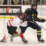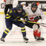 MEMBERTOU, CANADA, 13, Jan, 2026, U18 Woman’s Worlds, CAN vs. SWE. Image shows Edith LARSSON ÖRNKLOO #15 (Sweden) & Alida KORTE #9 (Canada). Photo: Werner Krainbucher