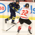 MEMBERTOU, CANADA, 13, Jan, 2026, U18 Woman’s Worlds, CAN vs. SWE. Image shows Svea NORDQVIST #8 (Sweden) & Hayley MCDONALD #22 (Canada). Photo: Werner Krainbucher