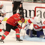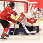 MEMBERTOU, CANADA, 13, Jan, 2026, U18 Woman’s Worlds, HUN vs. SUI. Image shows game winning goal for Switzerland. Photo: Werner Krainbucher
