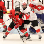 MEMBERTOU, CANADA, 13, Jan, 2026, U18 Woman’s Worlds, HUN vs. SUI. Image shows Blanka TEMESI #16 (Hungary) & Sarina MESSIKOMMER #28 (Switzerland). Photo: Werner Krainbucher