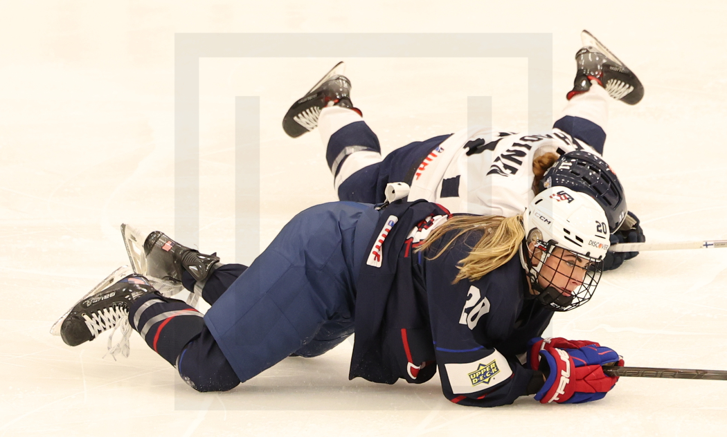 MEMBERTOU, CANADA, 13, Jan, 2026, U18 Woman’s Worlds, USA vs. FIN. Image shows Alaina GNETZ #20 (USA) & Aino LEHIKOINEN #11 (Finland). Photo: Werner Krainbucher