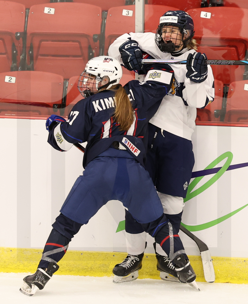 MEMBERTOU, CANADA, 13, Jan, 2026, U18 Woman’s Worlds, USA vs. FIN. Image shows Madelyn KIMBREL #17 (USA) & Tinja TAPANI #28 (Finland). Photo: Werner Krainbucher