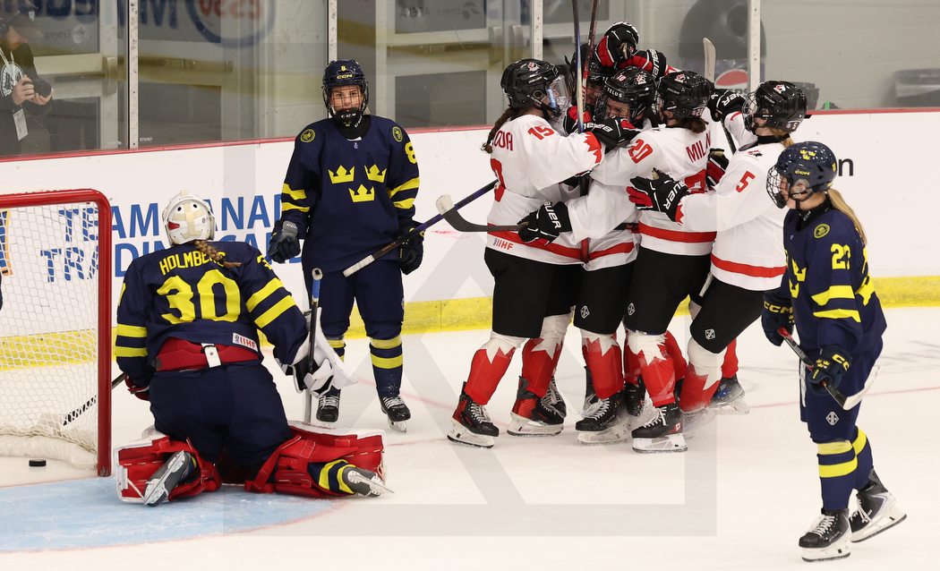 MEMBERTOU, CANADA, 13, Jan, 2026, U18 Woman’s Worlds, CAN vs. SWE. Image shows one of Canada’s goals. Photo: Werner Krainbucher