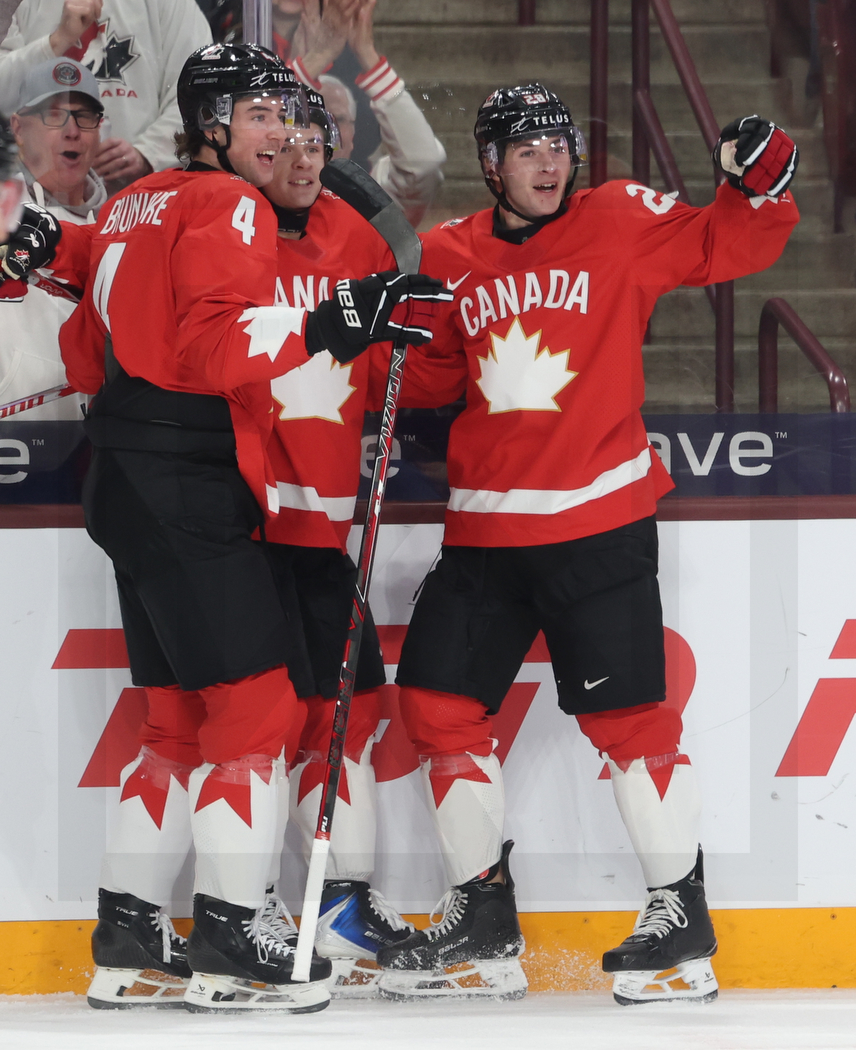 WK20251231_0629 1. Januar 2026 856 × 1050 PHOTO GALLERY WORLD JUNIORS 2026 CAN – FIN 7:4 MINNEAPOLIS, USA, 31, Dec, 2025, World Juniors, CAN vs. FIN. Image shows goal celebration Canada. Photo: Werner Krainbucher (Puckfans.at)