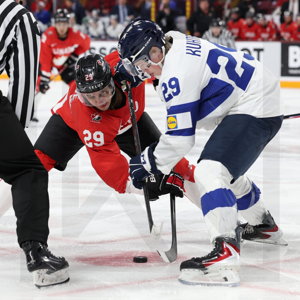 WK20251231_0927 1. Januar 2026 1050 × 1050 PHOTO GALLERY WORLD JUNIORS 2026 CAN – FIN 7:4 MINNEAPOLIS, USA, 31, Dec, 2025, World Juniors, CAN vs. FIN. Image shows Michael HAGE #29 (Canada) & Jasper KUHTA #29 (Finland). Photo: Werner Krainbucher (Puckfans.at)