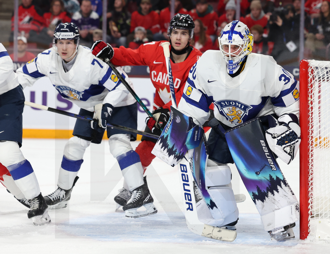 MINNEAPOLIS, USA, 31, Dec, 2025, World Juniors, CAN vs. FIN. Image shows Daniel NIEMINEN #7 (Finland), Michael MISA #7 (Canada) & Petteri RIMPINEN #30 (Finland). Photo: Werner Krainbucher (Puckfans.at)