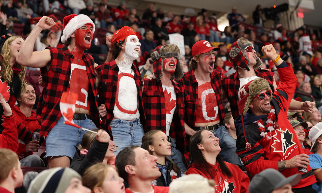 WK20251231_1482 1. Januar 2026 1050 × 630 PHOTO GALLERY WORLD JUNIORS 2026 CAN – FIN 7:4 MINNEAPOLIS, USA, 31, Dec, 2025, World Juniors, CAN vs. FIN. Image shows Canadian fans. Photo: Werner Krainbucher (Puckfans.at)