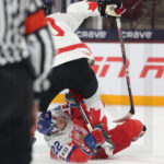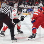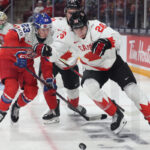 MINNEAPOLIS, USA, 26, Dec, 2025, World Juniors, CZE vs. CAN. Image shows Sam O’REILLY #23 (Canada) & Jakub FIBIGR #7 (Czech Republic). Photo: Werner Krainbucher (Puckfans.at)