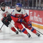 MINNEAPOLIS, USA, 26, Dec, 2025, World Juniors, CZE vs. CAN. Image shows Jett LUCHANKO #17 (Canada) & Petr SIKORA #17 (Czech Republic). Photo: Werner Krainbucher (Puckfans.at)