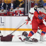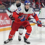 MINNEAPOLIS, USA, 31, Dec, 2025, World Juniors, CZE vs. LAT. Image shows Adam BENAK #20 (Czech Republic) & Nils MAURINS #30 (Latvia). Photo: Werner Krainbucher (Puckfans.at)