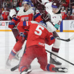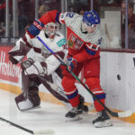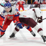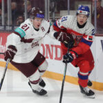 MINNEAPOLIS, USA, 31, Dec, 2025, World Juniors, CZE vs. LAT. Image shows Krisjanis SARTS #2 (Latvia) & Tomas GALVAS #23 (Czech Republic). Photo: Werner Krainbucher (Puckfans.at)