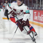 MINNEAPOLIS, USA, 31, Dec, 2025, World Juniors, CZE vs. LAT. Image shows Rolands NAGLIS #4 (Latvia). Photo: Werner Krainbucher (Puckfans.at)