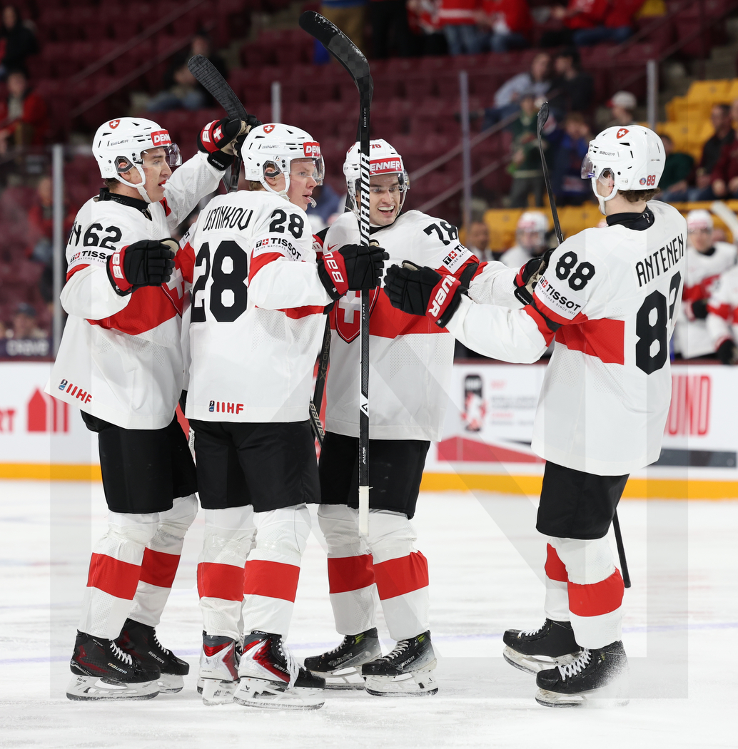 MINNEAPOLIS, USA, 02, Jan, 2026, World Juniors, Quarterfinal, CZE vs. SUI. Image shows goal celebration Switzerland. Photo: Werner Krainbucher
