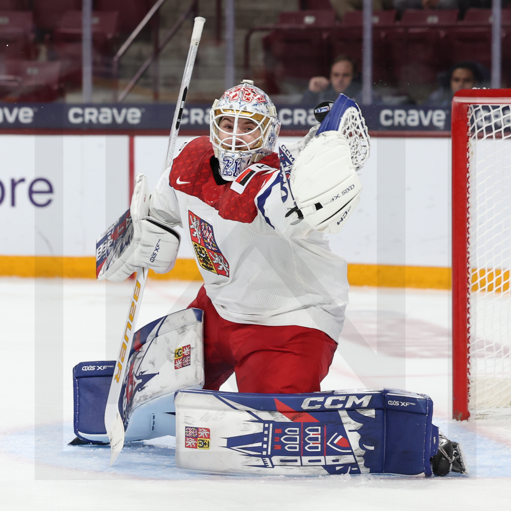 MINNEAPOLIS, USA, 27, Dec, 2025, World Juniors, DEN vs. CZE. Image shows Mattas MARIK #1 (Czech Republic) catching the puck. Photo: Werner Krainbucher