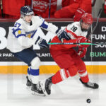 MINNEAPOLIS, USA, 26, Dec, 2025, World Juniors, DEN vs. FIN. Image shows Anton LINDE #22 (Denmark) & Atte JOKI #35 (Finland). Photo: Werner Krainbucher (Puckfans.at)