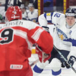 MINNEAPOLIS, USA, 26, Dec, 2025, World Juniors, DEN vs. FIN. Image shows Aron KIVIHARJU #33 (Finland) & Markus JAKOBSEN #5 (Denmark). Photo: Werner Krainbucher (Puckfans.at)
