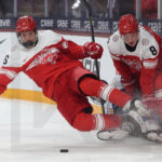 MINNEAPOLIS, USA, 26, Dec, 2025, World Juniors, DEN vs. FIN. Image shows Emil JAKOBSEN #6 (Denmark) & Jesper OLESEN #8 (Denmark). Photo: Werner Krainbucher (Puckfans.at)