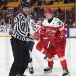 MINNEAPOLIS, USA, 26, Dec, 2025, World Juniors, DEN vs. FIN. Image shows Lasse BAERENTSEN #23 (Denmark). Photo: Werner Krainbucher (Puckfans.at)