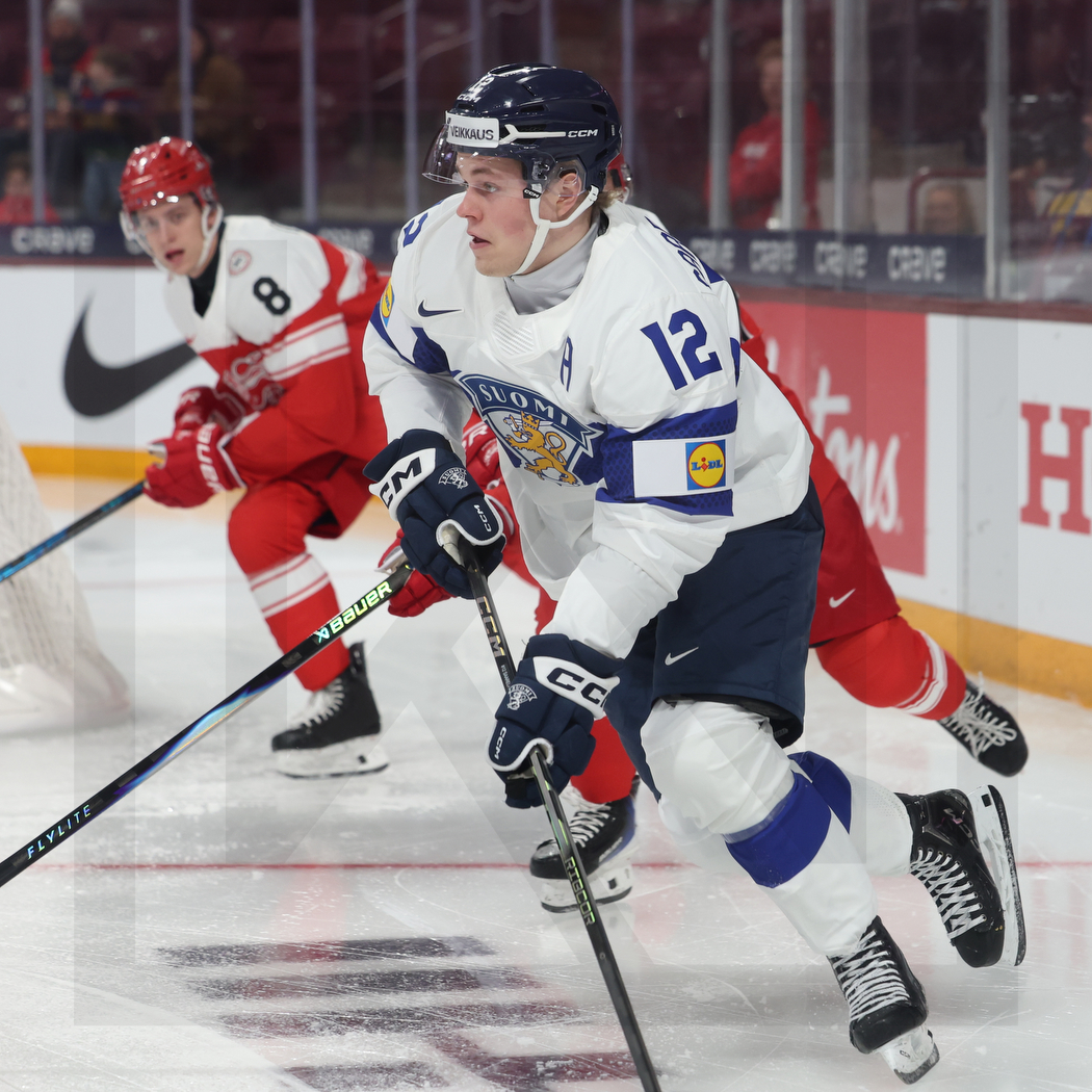 WK20251226_0018 27. Dezember 2025 1050 × 1050 PHOTO GALLERY WORLD JUNIORS 2026 DEN -FIN 2:6 MINNEAPOLIS, USA, 26, Dec, 2025, World Juniors, DEN vs. FIN. Image shows Jesper OLESEN #8 (Denmark) & Joona SAARELAINEN #12 (Finland). Photo: Werner Krainbucher (Puckfans.at)