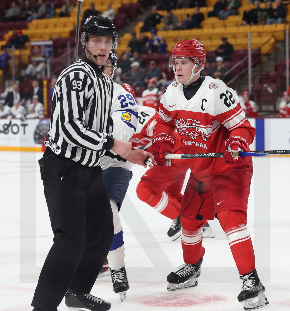 MINNEAPOLIS, USA, 26, Dec, 2025, World Juniors, DEN vs. FIN. Image shows Anton LINDE #22 (Denmark). Photo: Werner Krainbucher (Puckfans.at)