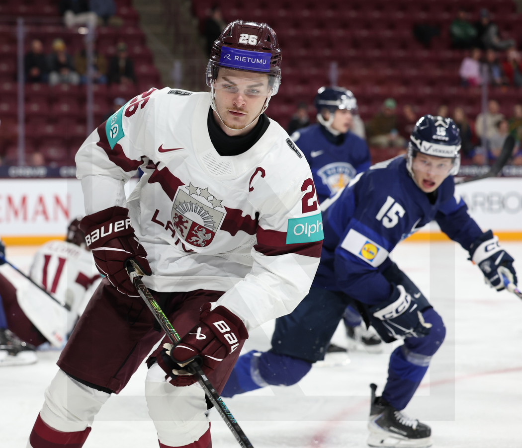 MINNEAPOLIS, USA, 28, Dec, 2025, World Juniors, FIN vs. LAT. Image shows Oskars BRIEDIS #26 (Latvia) & Aatos KOIVU #15 (Finland). Photo: Werner Krainbucher