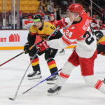 MINNEAPOLIS, USA, 02, Jan, 2026, World Juniors, Relegation Round, GER vs. DEN. Image shows Matthias PAPE #23 (Germany) & Lasse BAERENTSEN #23 (Denmark). Photo: Werner Krainbucher