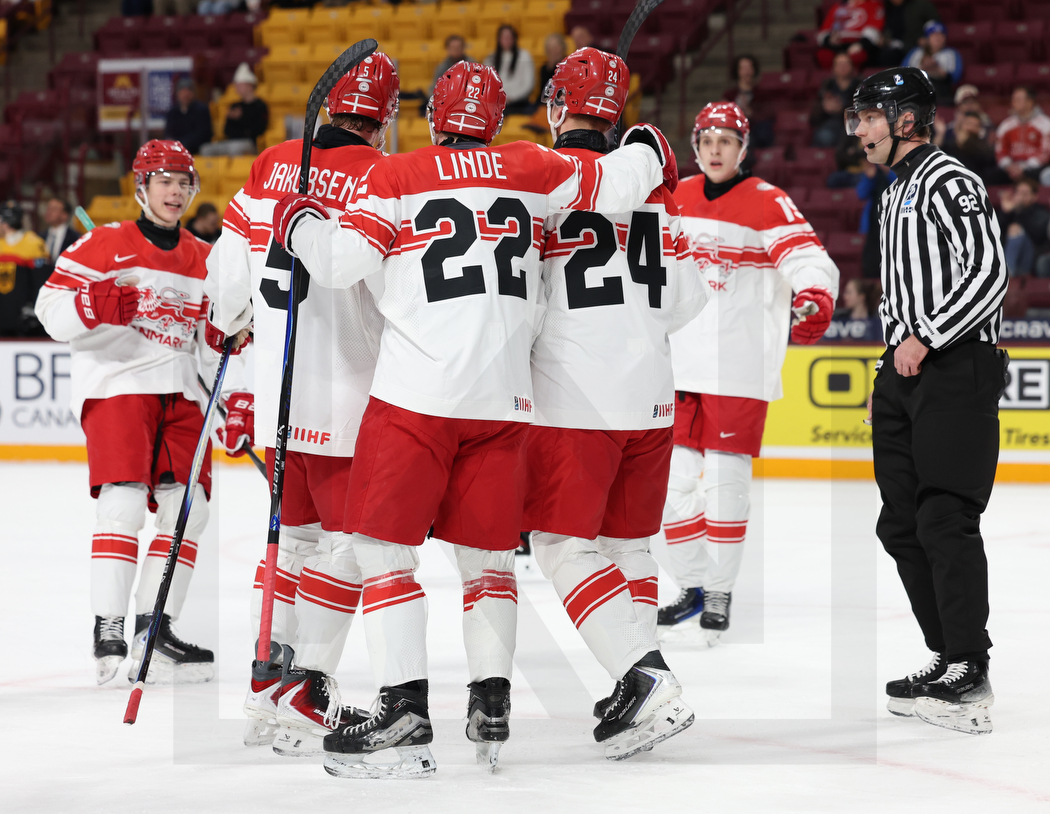 MINNEAPOLIS, USA, 02, Jan, 2026, World Juniors, Relegation Round, GER vs. DEN. Image shows goal celebration Denmark. Photo: Werner Krainbucher