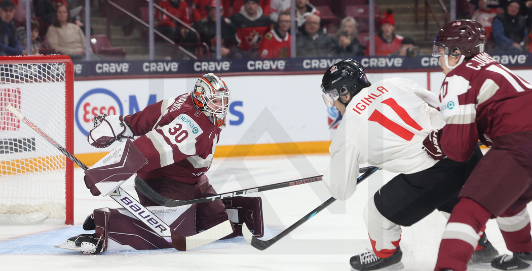 WK20251227_0186 28. Dezember 2025 1050 × 536 PHOTO GALLERY WORLD JUNIORS 2026 LAT -CAN 1:2 OT MINNEAPOLIS, USA, 27, Dec, 2025, World Juniors, LAT vs. CAN. Image shows Nils MAURINS #30 (Latvia), Tij IGINLA #11 (Canada) & Harijs CJUNSKIS #10 (Latvia). Photo: Werner Krainbucher (Puckfans.at)