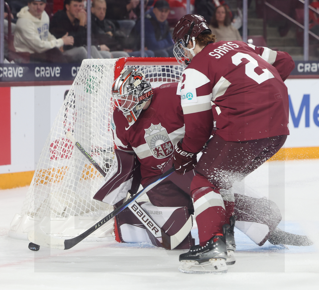 WK20251227_0329 28. Dezember 2025 1050 × 954 PHOTO GALLERY WORLD JUNIORS 2026 LAT -CAN 1:2 OT MINNEAPOLIS, USA, 27, Dec, 2025, World Juniors, LAT vs. CAN. Image shows Nils MAURINS #30 (Latvia) & Krisjanis SARTS #2 (Latvia). Photo: Werner Krainbucher (Puckfans.at)