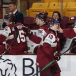 MINNEAPOLIS, USA, 30, Dec, 2025, World Juniors, LAT vs. DEN. Image shows Latvia after one of their goals. Photo: Werner Krainbucher (Puckfans.at)