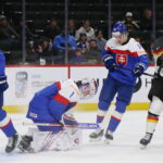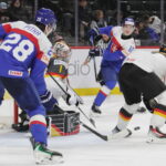 Tobias Pitka #28, Linus Viellard #1, Jan Chovan #12, Max Bleicher #4, World Juniors 2026 SVK -GER, Grand Casino Arena, Saint Paul © Puckfans.at / Andreas Robanser