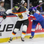 Samuel Murin #18, Max Bleicher #4, World Juniors 2026 SVK -GER, Grand Casino Arena, Saint Paul © Puckfans.at / Andreas Robanser