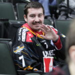 Fan with Black Wings Linz Jersey in the Grand Casino Arena, World Juniors 2026 SVK -GER, Grand Casino Arena, Saint Paul © Puckfans.at / Andreas Robanser