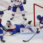 Michal Pradel #1, Cole Eiserman #34, Luka Radivojevic #26, World Juniors 2026 SVK – USA, Grand Casino Arena, Saint Paul © Puckfans.at / Andreas Robanser