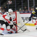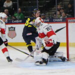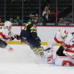 Gian Meier #8, Love Härenstam #30, World Juniors 2026 SWE – SUI, Grand Casino Arena, Saint Paul © Puckfans.at / Andreas Robanser
