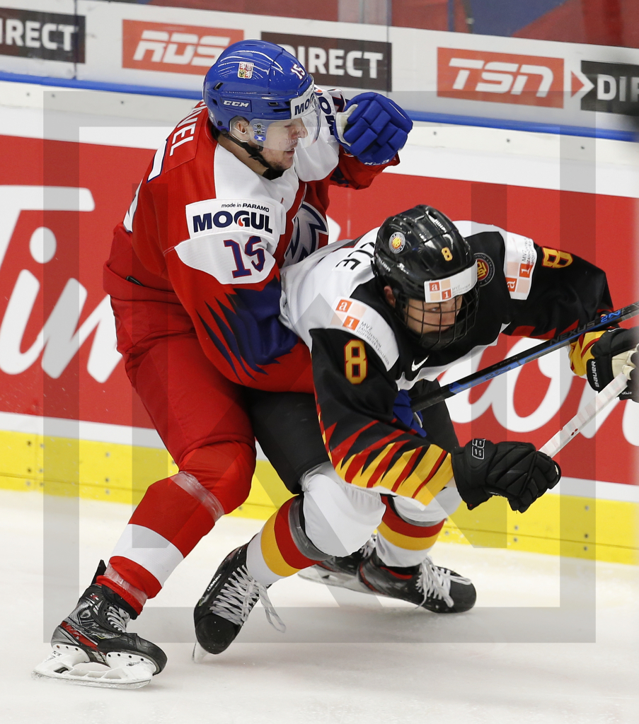 WK20191228_00491 28. Dezember 2019 903 × 1024 PHOTO GALLERY: World Juniors, CZE vs. GER 3:4, 28.12.2019 OSTRAVA, CZECH REPUBLIC, 28.Dec. 2019 – World Juniors, Preliminary Round, CZE vs. GER. Image shows Ondrej PAVEL #15 (Czech Republic) & Tim STÜTZLE #8 (Germany). Photo: Werner Krainbucher