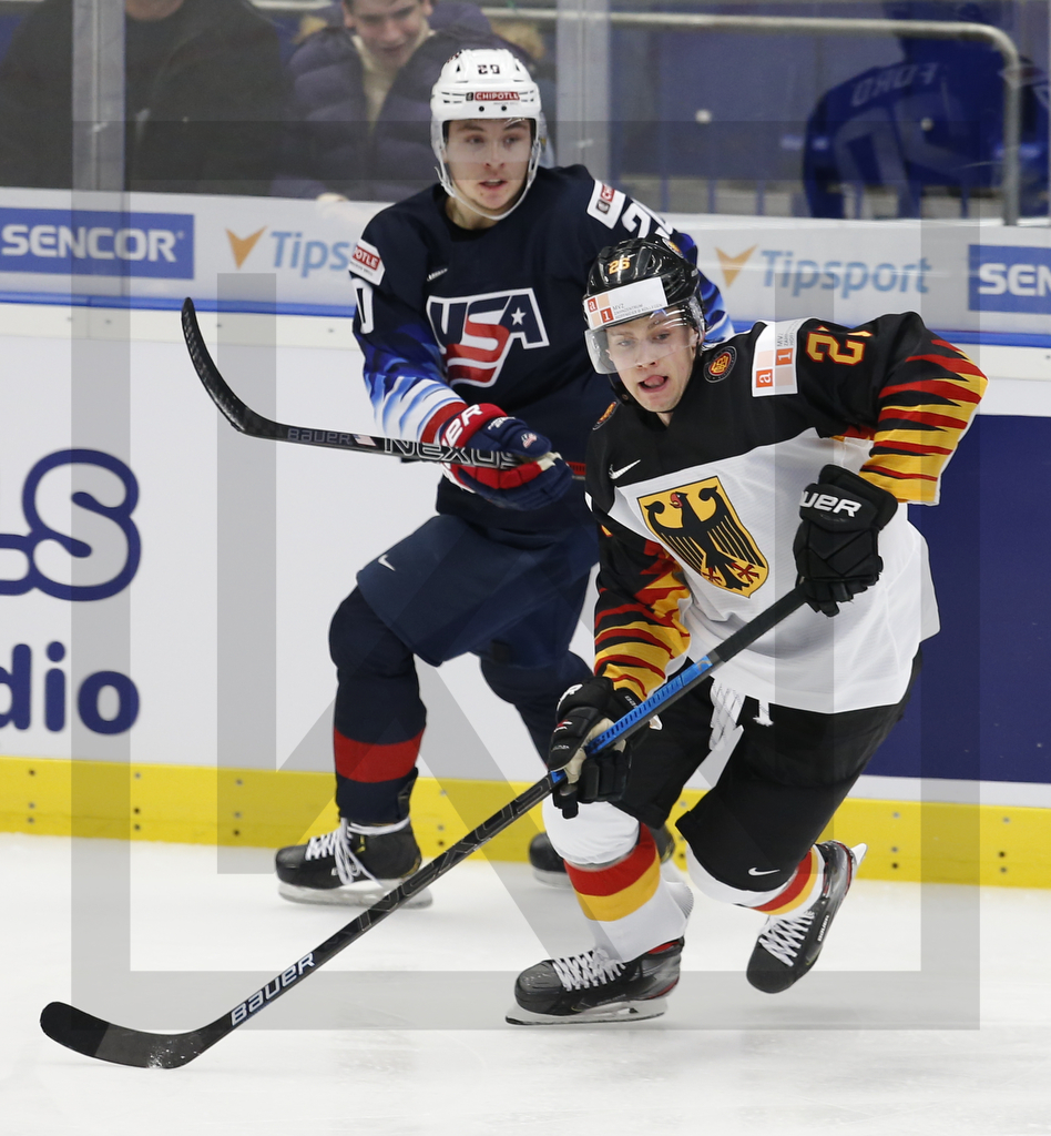 WK20191227_00287 27. Dezember 2019 948 × 1024 PHOTO GALLERY: World Juniors, GER vs. USA, 27.12.2019 OSTRAVA, CZECH REPUBLIC, 27.Dec. 2019 – World Juniors, Preliminary Round, GER vs. USA. Image shows Parker FORD #20 (USA) & Dominik BOKK #26 (Germany). Photo: Werner Krainbucher