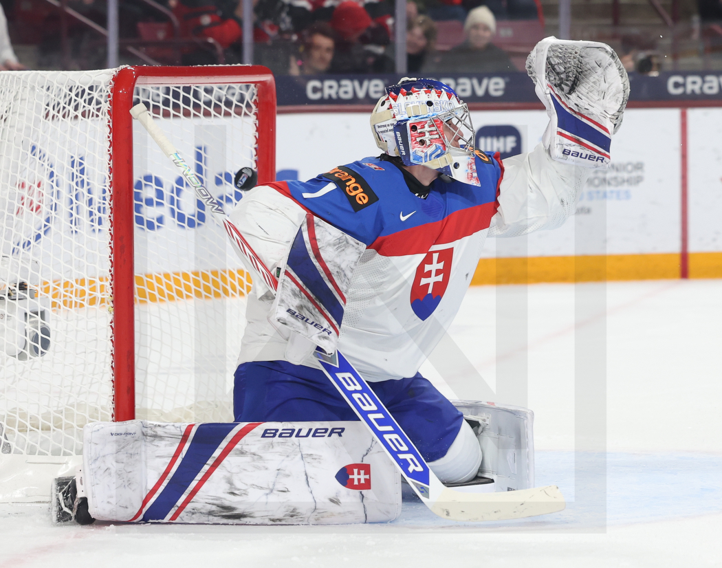 MINNEAPOLIS, USA, 02, Jan, 2026, World Juniors, Quarterfinal, CAN vs. SVK. Image shows Michal PRADEL #1 (Slovakia). Photo: Werner Krainbucher (Puckfans.at)