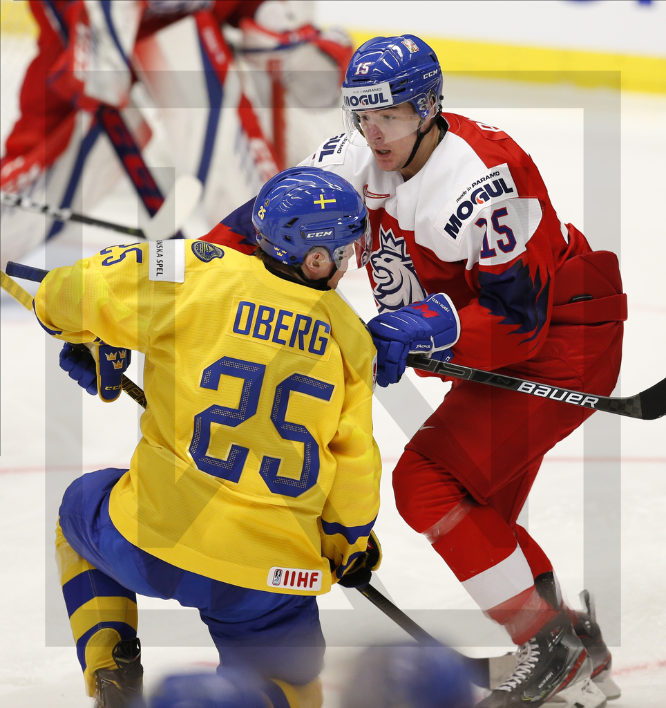 WK20200102_01886 2. Januar 2020 964 × 1024 PHOTO GALLERY: World Juniors, Quarterfinals, SWE vs. CZE 5:0, 02.01.2020 OSTRAVA, CZECH REPUBLIC, 02.Jan. 2020 – World Juniors, Quarterfinals, SWE vs. CZE. Image shows Linus OBERG #25 (Sweden) & Ondrej PAVEL #15 (Czech Republic). Photo: Werner Krainbucher