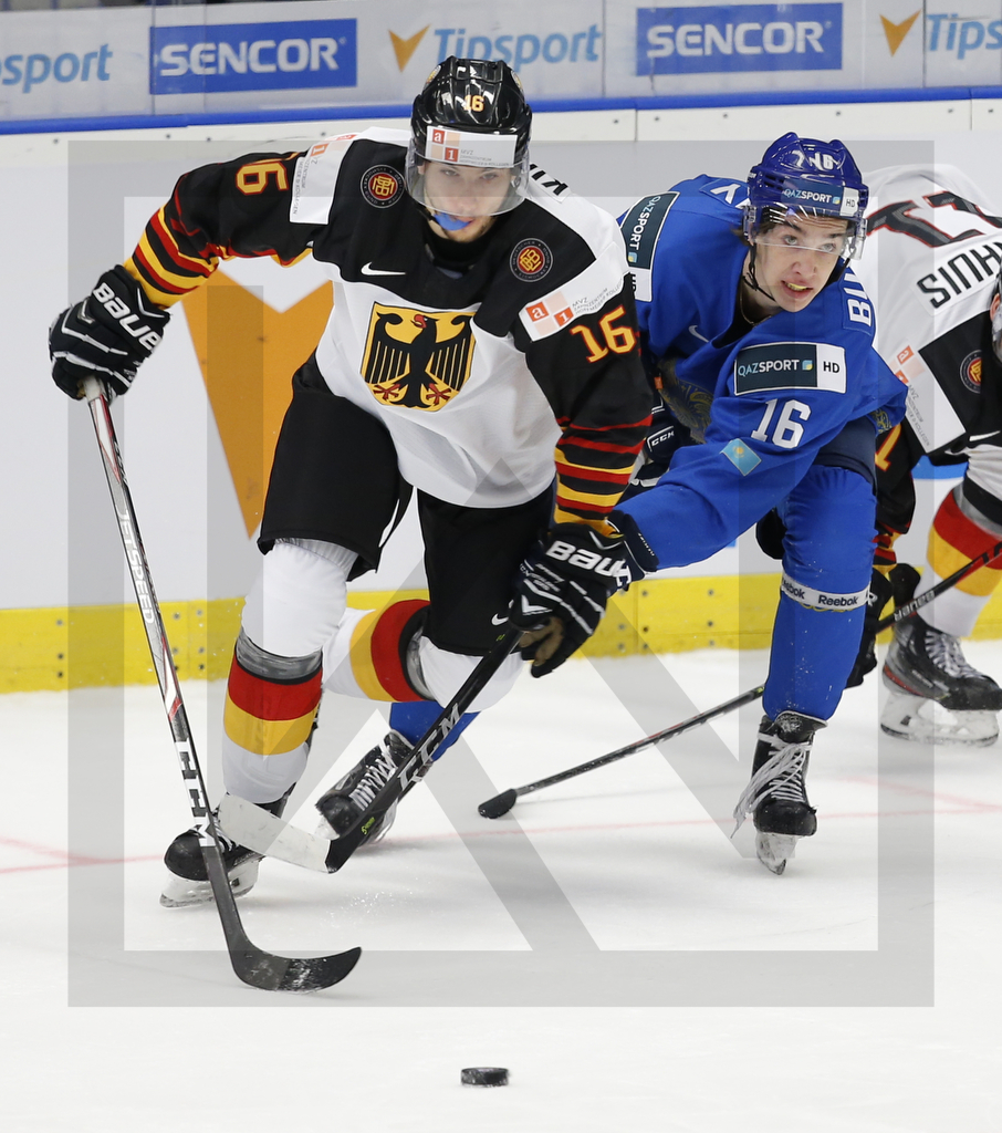 WK20200104_40 4. Januar 2020 906 × 1024 PHOTO GALLERY: World Juniors, Relegation Round, KAZ vs. GER, 04.01.2020 OSTRAVA, CZECH REPUBLIC, 04.Jan. 2020 – World Juniors, Relegation Round, KAZ vs. GER. Image shows Nino KINDER #16 & Andrei BUYALSKI (Kazakhstan). Photo: Werner Krainbucher