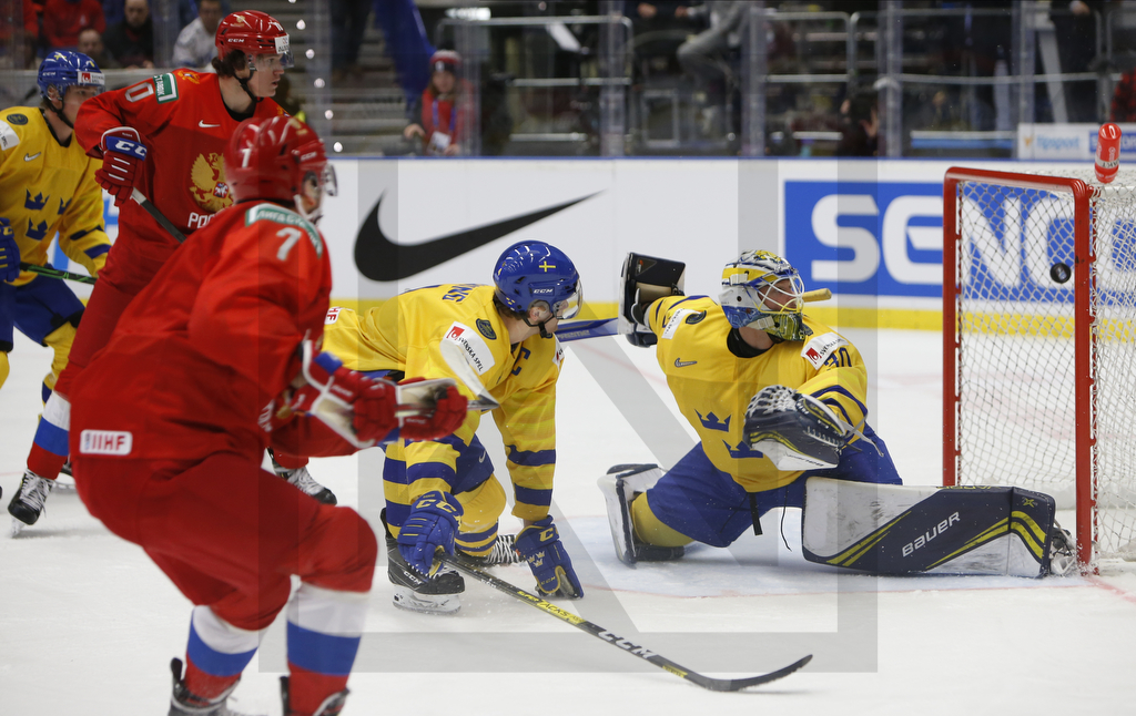 WK20200104_363 4. Januar 2020 1024 × 646 PHOTO GALLERY: World Juniors, Semifinals, SWE vs. RUS 5:4 OT, 04.01.2020 OSTRAVA, CZECH REPUBLIC, 04.Jan. 2020 – World Juniors, Semifinals, SWE vs. RUS. Image shows Dmitri VORONKOV #10 (Russia), Alexander KHOVANOV #7 (Russia), Adam GINNING #4 (Sweden) & Hugo ALNEFELT #30 (Sweden). Photo: Werner Krainbucher