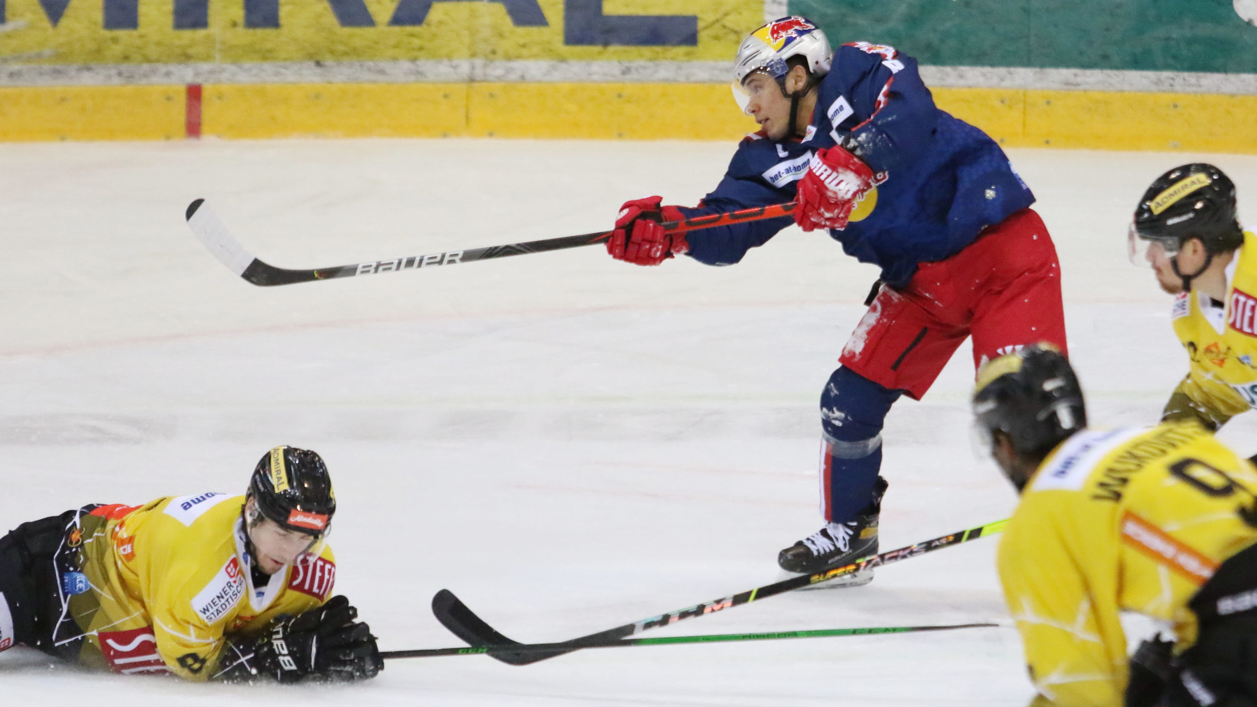 6T4A7920pf-ar 31. Januar 2021 2560 × 1440 Salzburg gewinnt erstmals gegen Wien Vienna Capitals – EC Red Bull Salzburg Jerome Leduc #8, Austin Ortega #8 Erste Bank Arena, Wien © Puckfans.at/Andreas Robanser